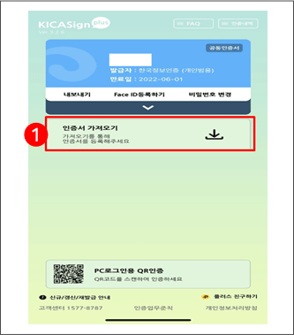 범용 공동인증서 가져오기 - 스마트폰 수강(인증서 가져오기 : 스마트폰)